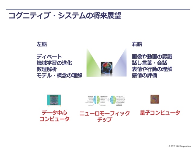 現在、顕在化しているのは、「複雑性の限界」です。ビッグデータに象徴されるように、とにかくデータ量は、爆発的に増えていますし、種類も増えています。情報が我々の周りにあふれていますが、すべての情報を理解することは不可能です。ビジネスや社会の環境や状況も複雑化しており、生成されるデータも増えていますが、とても人間が短時間に網羅的にデータや情報を理解して判断や行動するということは不可能になっています。そこで登場するのが、コグニティブシステムです。大量のデータを網羅的かつ詳細に分析するというコンピュータに得意なところを担当し、人間が判断や行動するために必要な情報を提供し、人を支援することを目指しています。