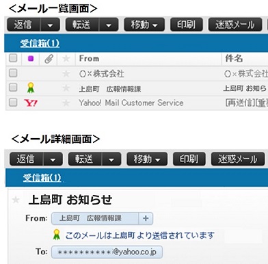今回上島町が採用した「安心マーク」の対象となるメールの受信環境は、ニフティ株式会社とヤフー株式会社のWebメールとなります。
