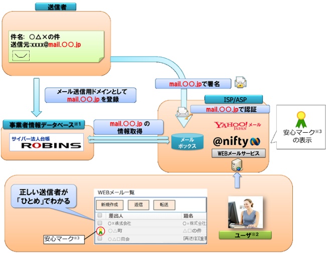 ※1「サイバー法人台帳ROBINS」:法人、団体、個人事業者について、名称、メールドメインなどのオフィシャルな情報を提供するサービスで、JIPDECが運営しています。